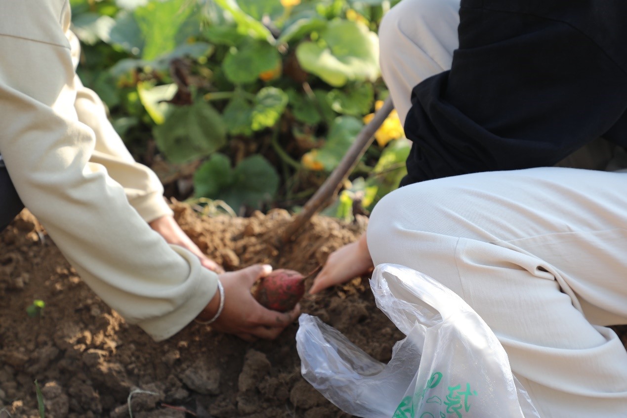心理辅导站负责人给每位学生都分配了任务,首先让学生们用工具将红薯完整的挖出,完成不能造成挖断破损,然后再把红薯运到指定地点。劳动需要参与者合作,在搬运环节中,学生们通过合作将红薯搬运到指定位置并为挖掘出的红薯称重,学生们把红薯放在事先准备好的袋子里,看哪一组搬运的红薯多;同学们在相互交流和合作中完成劳动任务,最后,负责人将红薯分给学生制作以红薯为主题的美味佳肴,引领学生在劳动与实践中感受合作的愉悦,体会劳动的快乐。
