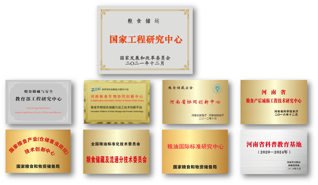 现有粮食储运国家工程研究中心(小麦)、粮食储藏与安全教育部工程研究中心、“2011计划”首批国家协同创新中心“河南粮食作物协同创新中心”、国家粮食产业(仓储害虫防控)技术创新中心、粮油国际标准研究中心(粮食储藏及流通)等十多个国家级、省部级科研平台,构建了国内外最完整的粮食储藏科研平台集群,设备总值近1亿元。