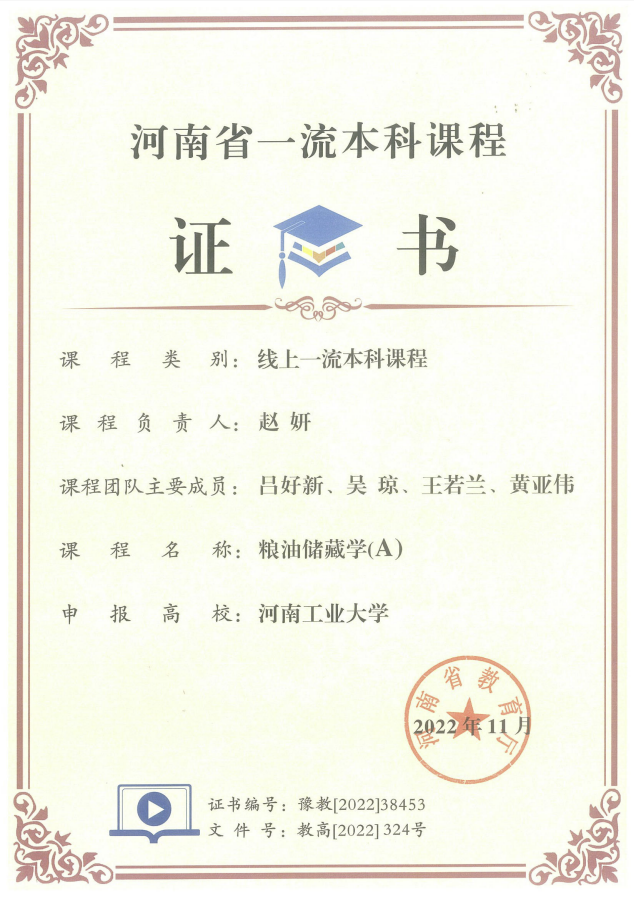 拥有学士、硕士、博士完整的人才培养体系。设有食品科学与工程(智慧储运方向)国家一流本科专业,同时也是国家级综合改革试点专业、国家级卓越计划专业;设有食品科学与工程一级学科博士学位授权点,食品科学与工程一级学科学术硕士授权点,生物与医药专业硕士学位授权点,农业昆虫与害虫防治、绿色储备科学与技术、智慧储运科学与工程和仓储有害生物智能防控四个二级学科学术硕士授权点,建有食品科学与工程博士后科研流动站。食品科学与工程学科在教育部第五轮学科评估中取得历史性突破,在河南省学科评估中排名第一,在ESI排名进入全球前1%。
