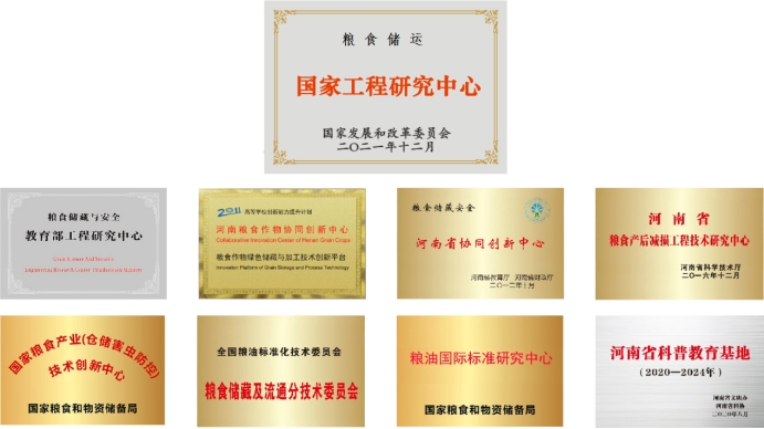现有粮食储运国家工程研究中心、粮食储藏与安全教育部工程研究中心、国家首批"2011计划"河南粮食作物协同创新中心、国家粮食产业(仓储害虫防控)技术创新中心、河南省粮食智能仓储工程技术研究中心、粮油国际标准研究中心(粮食储藏及流通)等十多个国家级、省部级科研平台,构建了国内外最完整的粮食储藏科研平台集群,设备总值近1亿元。