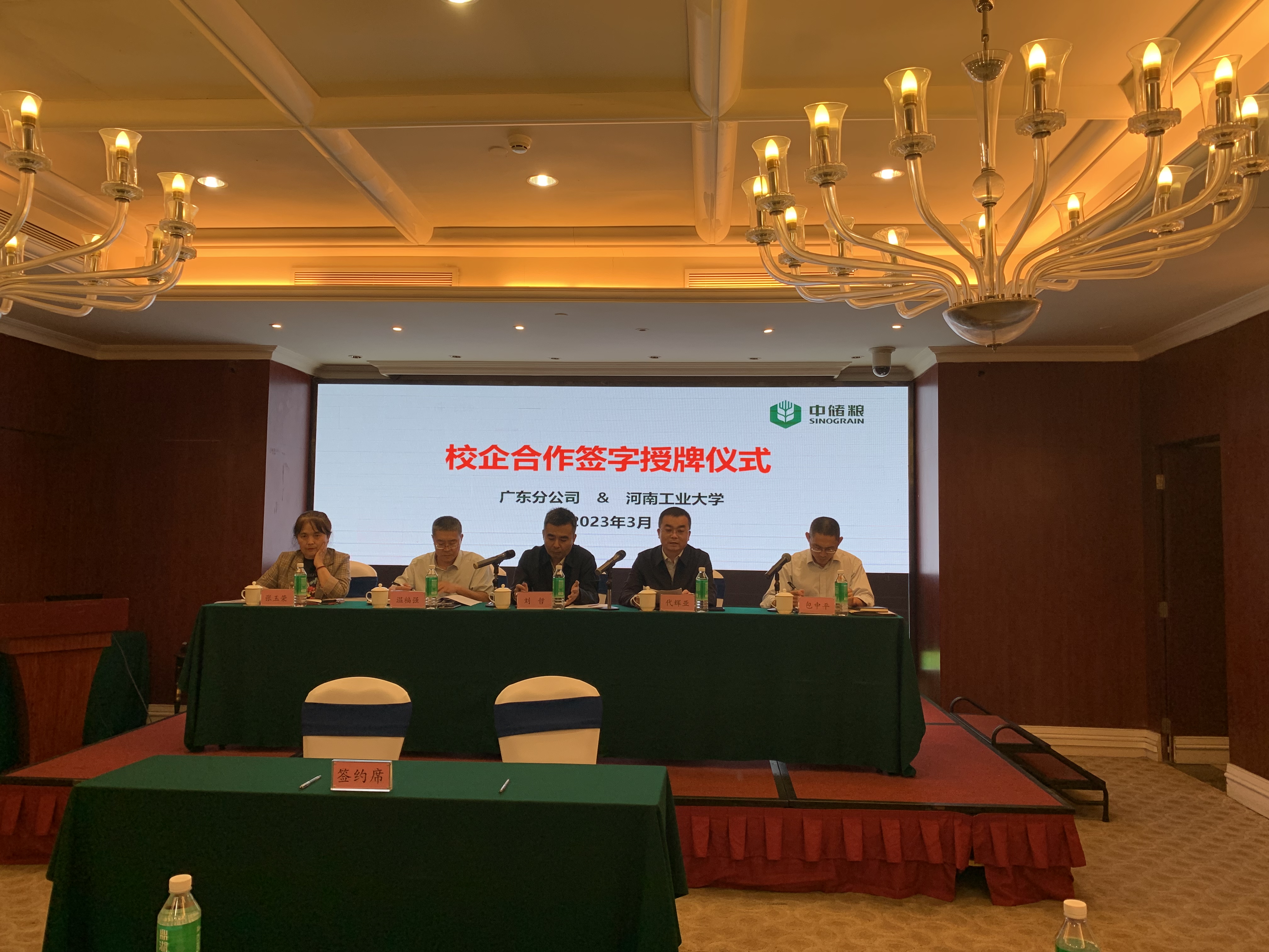 与中储粮广东分公司隆重举行校企合作签字授牌仪式。中储粮广东分公司副总经理刘哲、仓储处处长温福强、仓储处副处长包中平、888娱乐城