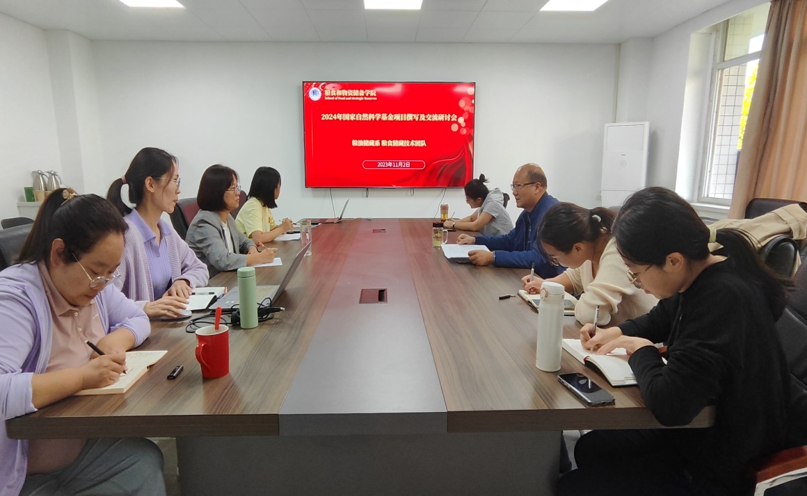 组织粮食储藏技术团队举办2024年召开国家自然科学基金项目申报交流会。副院长阎磊、学科科研与研究生工作办公室主任刘江、团队负责人渠琛玲教授及团队教师参加了会议。