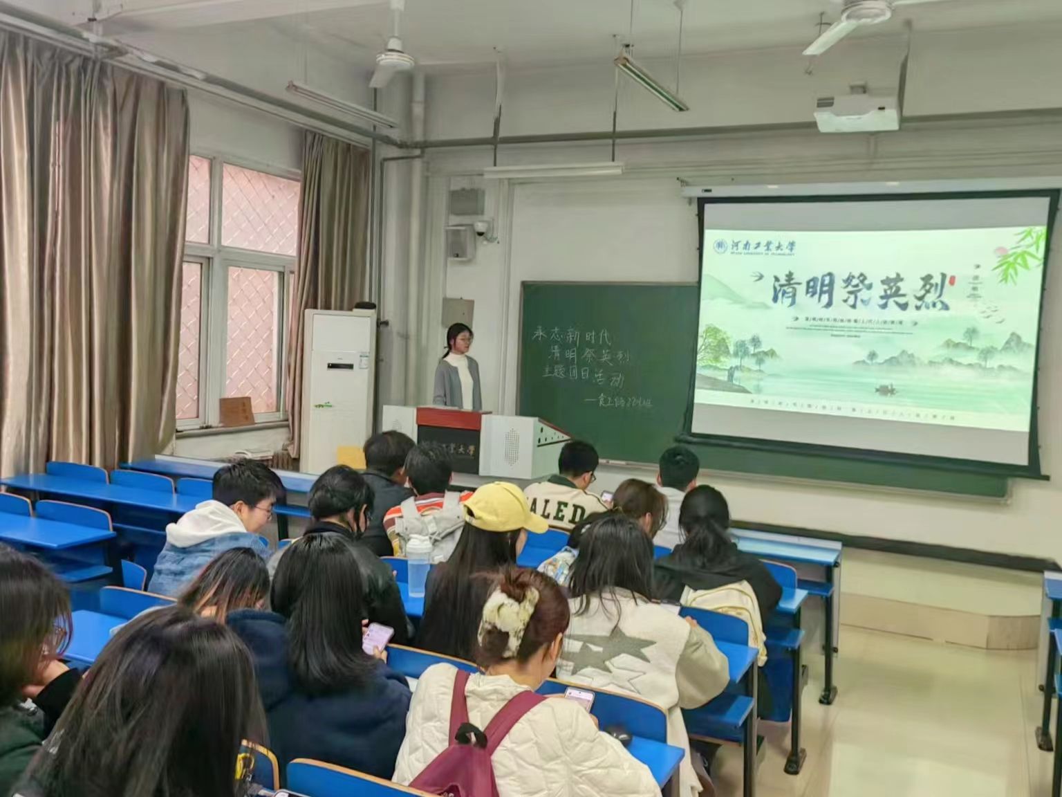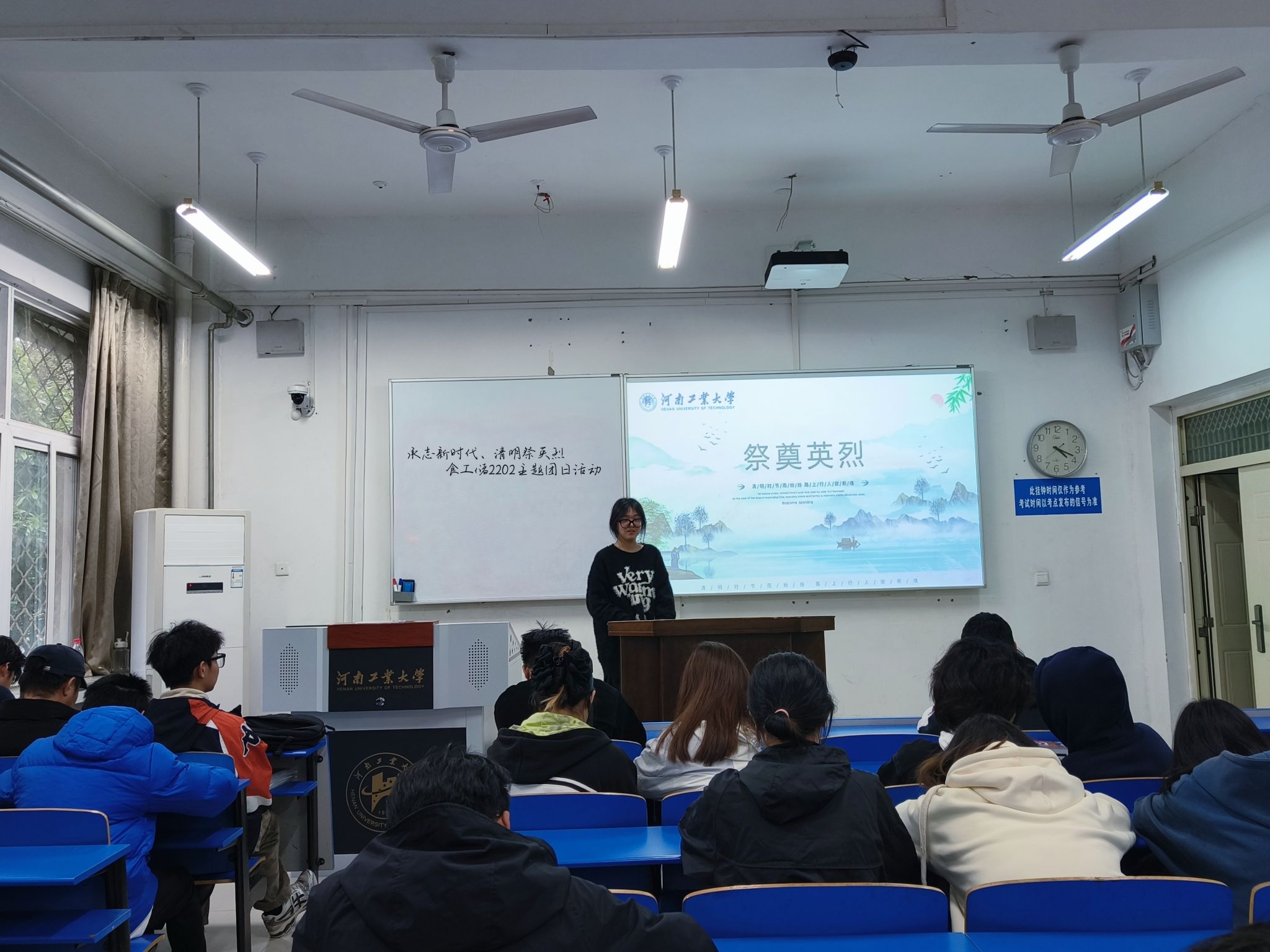 活动中,班委向同学们讲述了革命烈士事迹,带领同学们缅怀先烈、铭记历史,珍视革命先辈用生命和青春换来的美好生活。随后同学们通过网上线上致敬默哀、敬献花篮、抒写感言寄语等等绿色、环保的方式表达对先烈的崇敬之心、感念之情、传承之志。