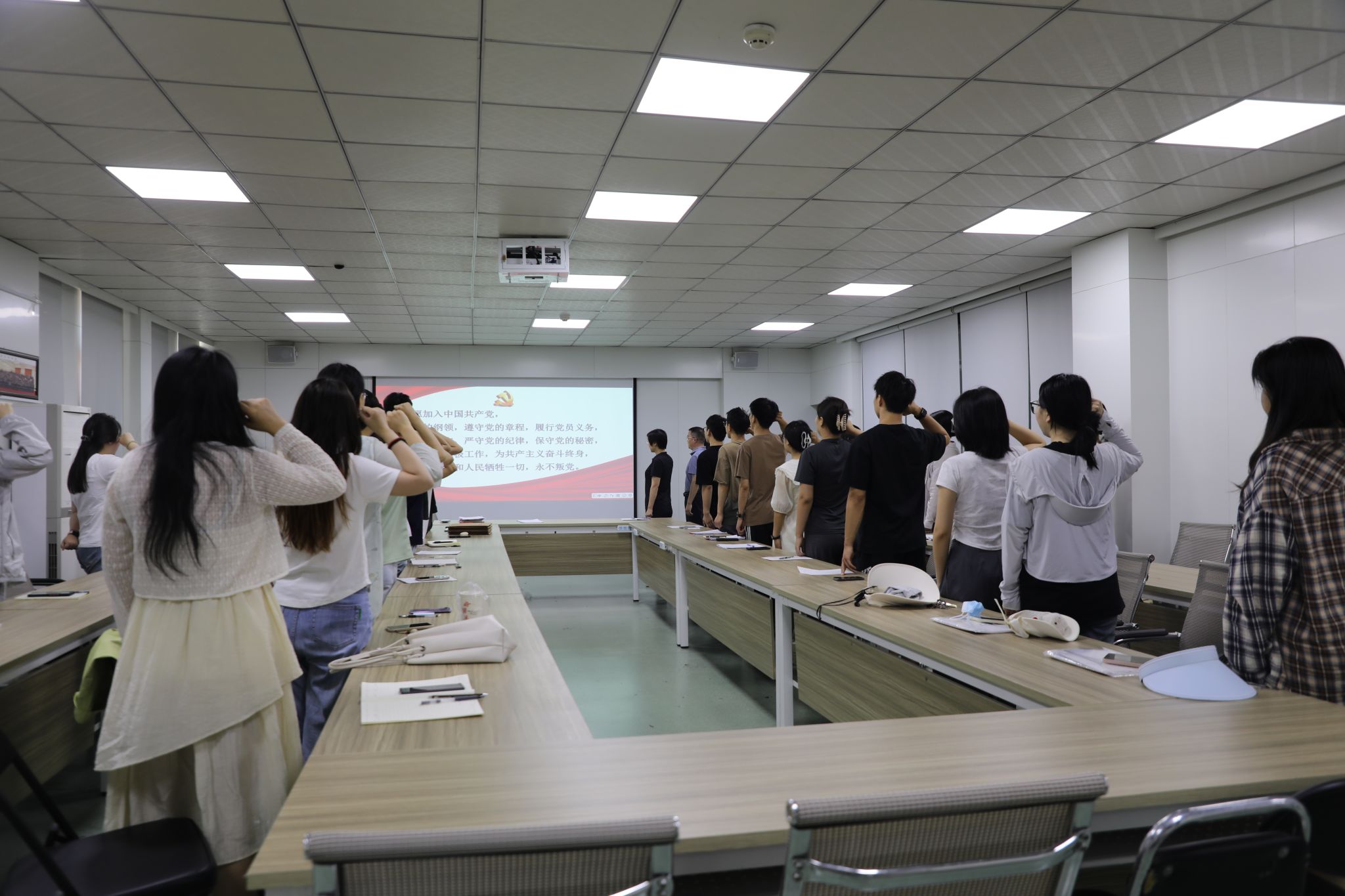 梁艳带领全体毕业生党员重温了入党誓词,全体毕业生党员面向鲜红的党旗,整齐列队,举起右手,庄严宣誓,铿锵恢弘的誓词,震撼着在场每一位党员的内心。铮铮有力的誓言,彰显了每一位党员不忘初心、矢志奋斗的坚定决心。