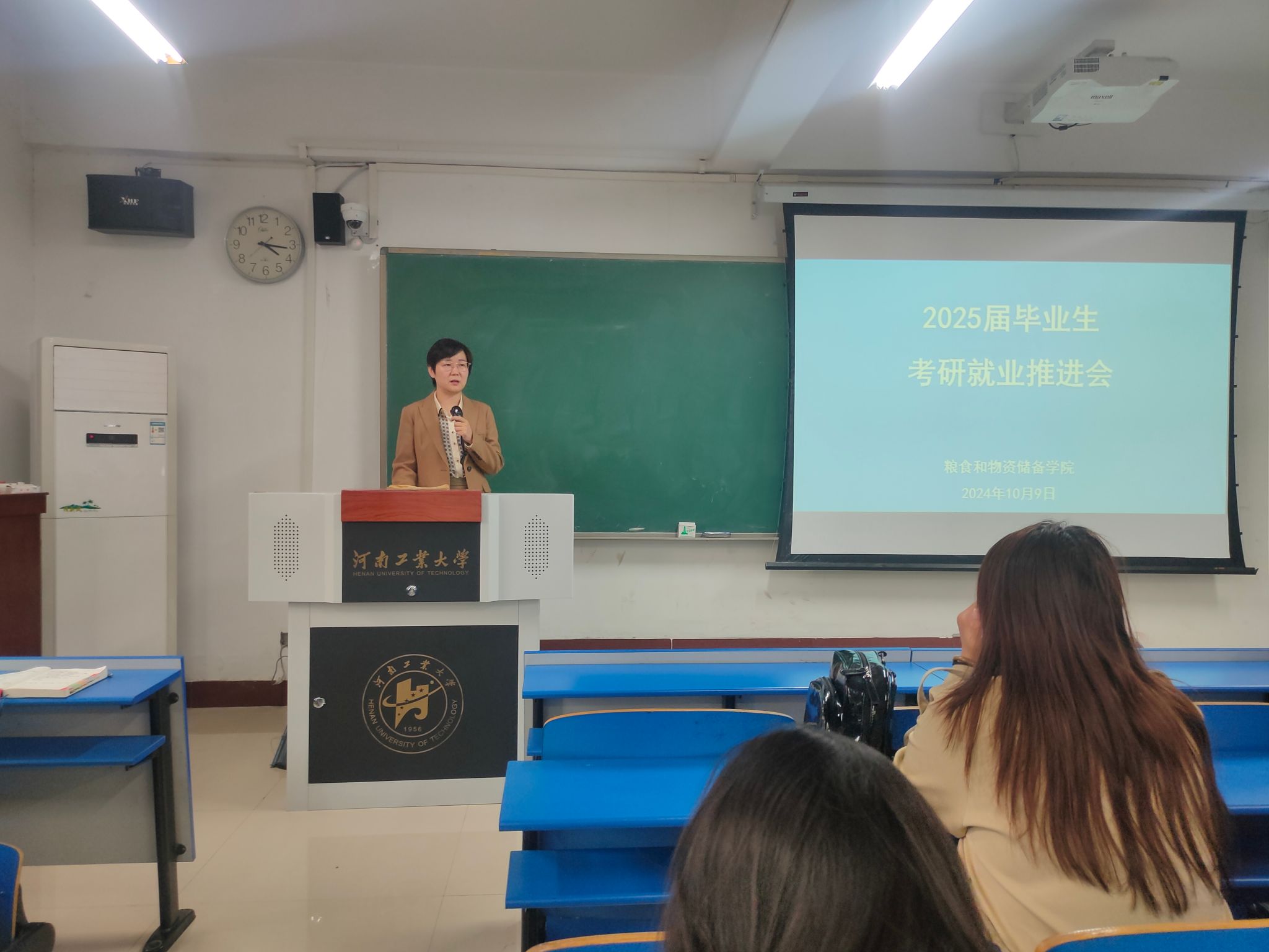 会议伊始,梁艳剖析了当前就业形势的新动态、新特点,结合历年就业数据,为同学们提供了就业方向的选择依据。她针对考研与就业两大群体,进行了细致入微的分类指导,尤其针对重点对口就业单位的应聘准备,进行了详尽而实用的辅导:对考研同学的志愿选择,提出一些切实有效的建议。她鼓励同学们要客观审视自身条件,及时修正就业目标,并对毕业生提出了以下建议:一是提高就业去向选择的精准度与成功率。二是要持续提升个人竞争力,为顺利入职或上岸打下坚实基础。