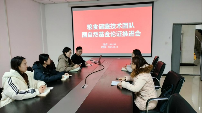 粮食储藏技术团队于2月18日组织开展了2025年国家自然科学基金论证推进会,团队多位老师参加了会议。