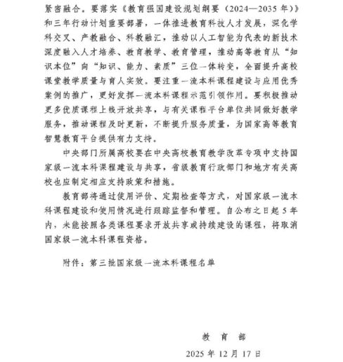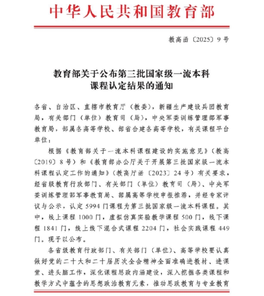 近日,教育部正式公布第三批国家级一流本科课程认定结果。888娱乐城