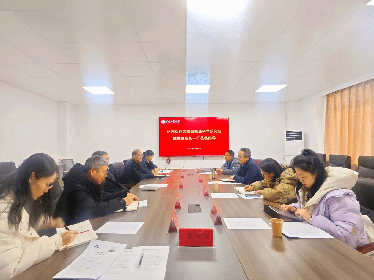 为全面深化绿色储粮领域技术创新、标准构建与人才培养合作,加快科技成果转化与新质生产力形成,1 月 27 日,云南省粮油科学研究院院长陈雪峰带队,副院长刘付英、粮油研究室主任聂绪恒、副主任文韵漫一行四人到访888娱乐城